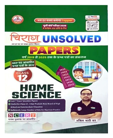 The Ankit Bhati Chirag Unsolved Papers Home Science Class 12 book is an essential guide for students preparing for the UP Board Exam 2026. Designed meticulously based on the NCERT Home Science textbook, this book covers unsolved question papers from 2019 to 2025, helping students practice and master every concept. By referring to this book, students can enhance their exam readiness and improve time management skills for solving questions efficiently.