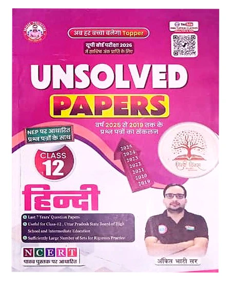 The book “Ankit Bhati Unsolved Papers Hindi Class 12 Year 2019 to 2025 UP Board Exam 2026 Chirag Based on NCERT Textbook” is an essential resource for Class 12 students who are preparing for the UP Board Exam 2026. This book has been carefully designed to provide a complete collection of unsolved question papers from the year 2019 to 2025. By practicing these papers, students can strengthen their exam preparation and gain confidence in tackling different types of questions.