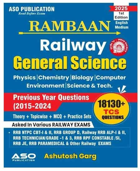The Aso Ramban Railway General Science Previous Year Questions 2015-2024 (TCS Questions 18130+) 1st Edition 2025 English Medium By Ashutosh Garg is one of the most comprehensive books designed for aspirants preparing for the Railway Recruitment Board (RRB) examinations. This book is a must-have for students who want to strengthen their General Science section, which plays a vital role in the Railway Group D, NTPC, ALP, Technician, and other RRB exams.